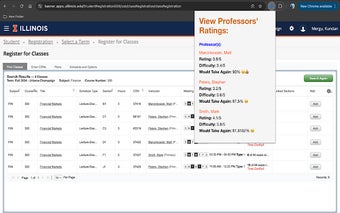 Utilizzando i dati di RateMyProfessors.com, UIUCProfCritic estrae automaticamente le informazioni sui professori visibili nella pagina di registrazione e le organizza in modo chiaro. Gli studenti possono cliccare sui nomi dei professori per accedere a ulteriori dettagli, rendendo l'intero processo di scelta dei corsi più efficiente e meno stressante.